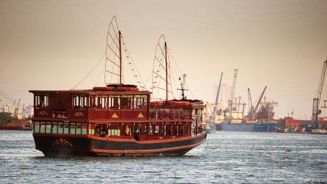 清晨的雾气还没完全散开,河面像铺了一层细...